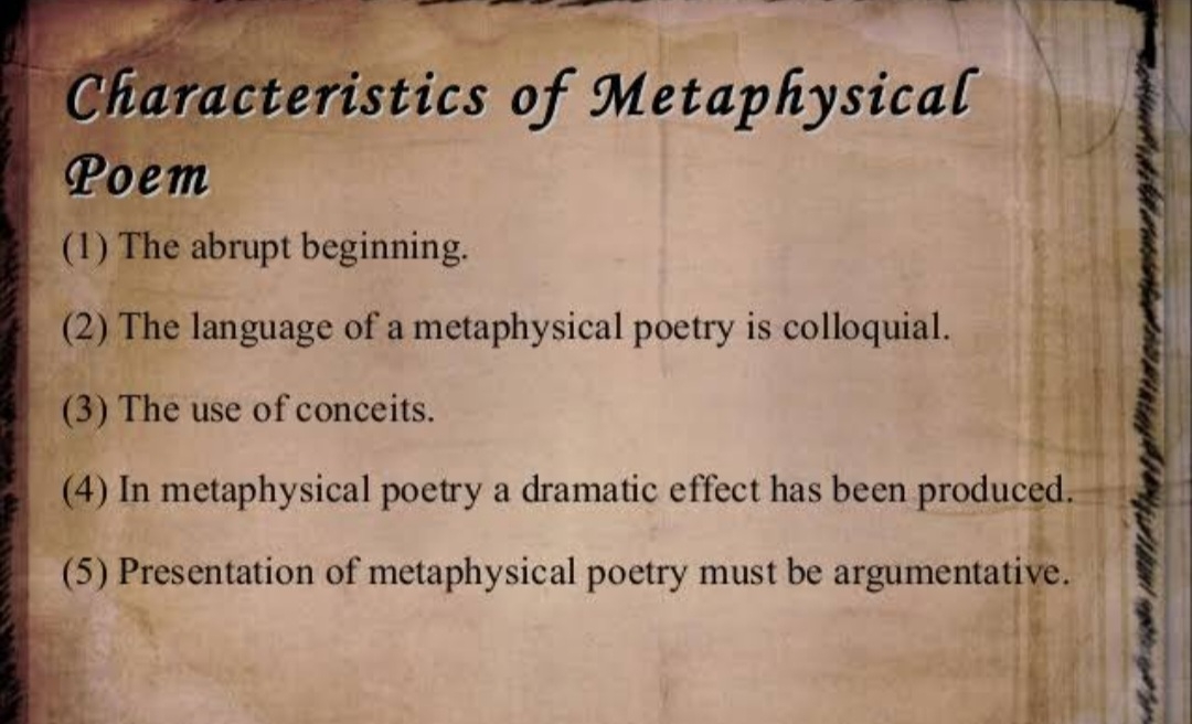 Overall, metaphysical poetry is known for its intellectual rigor, intricate wordplay, and exploration of profound ideas, making it a distinctive and enduring part of literary history.
